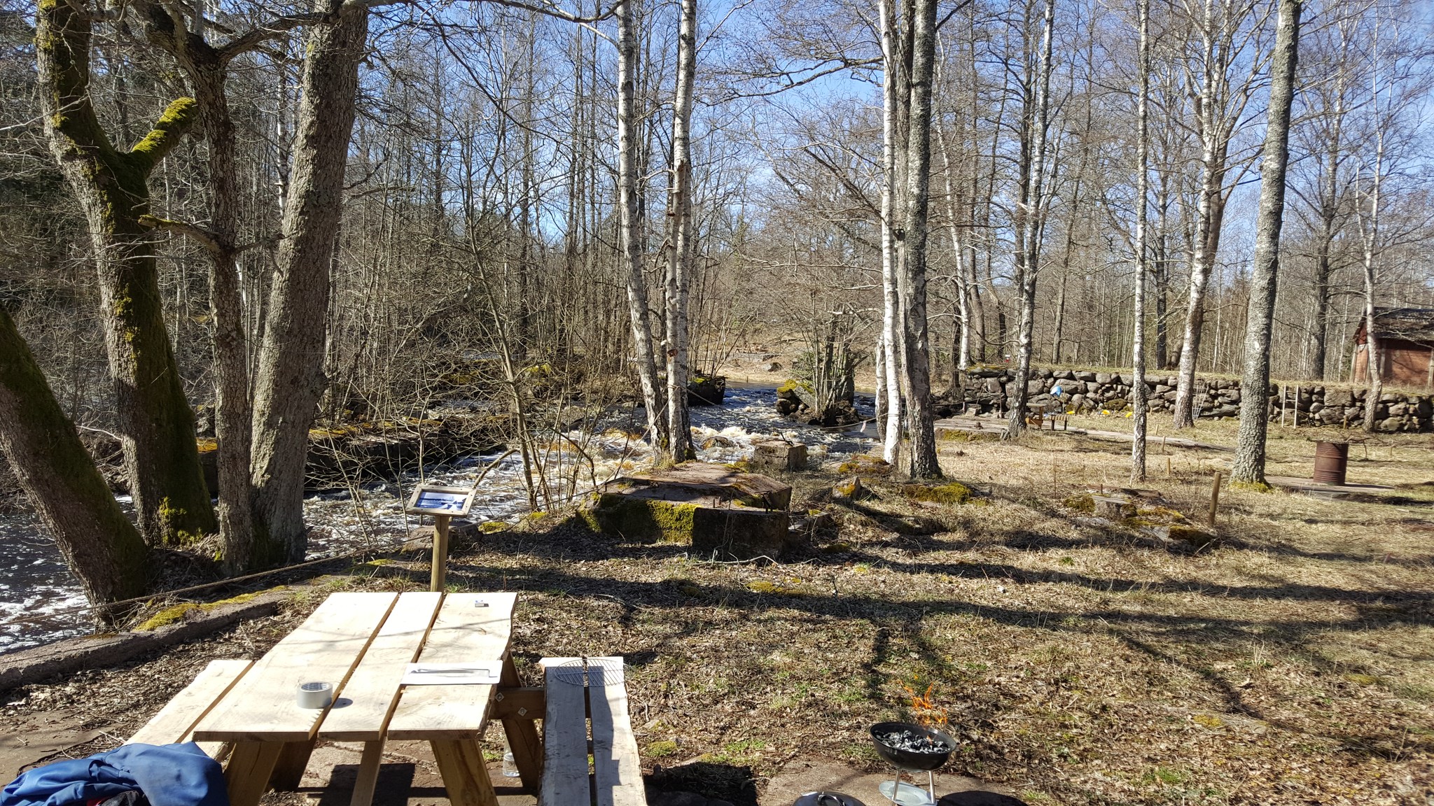 Här finns rastmöbler som inbjuder till en trevlig och avkopplande paus med den medhavda kaffekorgen till ljudet av Alsteråns forsande vatten.